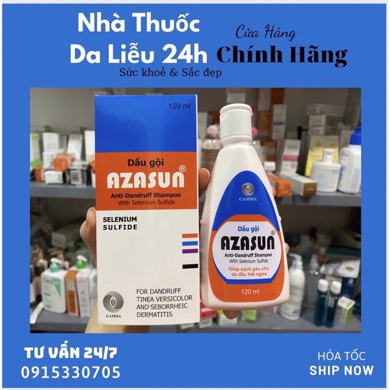 *Công dụng: vệ sinh da đầu, làm sạch gàu, giảm ngứa, giúp da đầu luôn khoẻ mạnh.*Cách dùng: Để có hiệu quả tốt, nên dùng Azasun 1% ít nhất 2 lần/ tuần.Làm ướt tóc và da đầu bằng nước ấm. Xoa 1 lượng vừa đủ lên da đầu để tạo bọt. Giữ bọt trên đầu 2-3 phút, sau đó xả lại bằng nước sạch. Xoa Azasun lên da đầu một lần nữa và xả sạch bằng nước. Đối với tóc nhuộm hoặc dùng hoá chất để uốn, sau khi dùng Azasun nên xả bằng nước sạch ít nhất trong 5 phút để tránh biến đổi màu của tóc. Sau khi dùng Azasun rửa tay sạch bằng nước.dầu gội đầu sạch da dầu ngứa da dầu