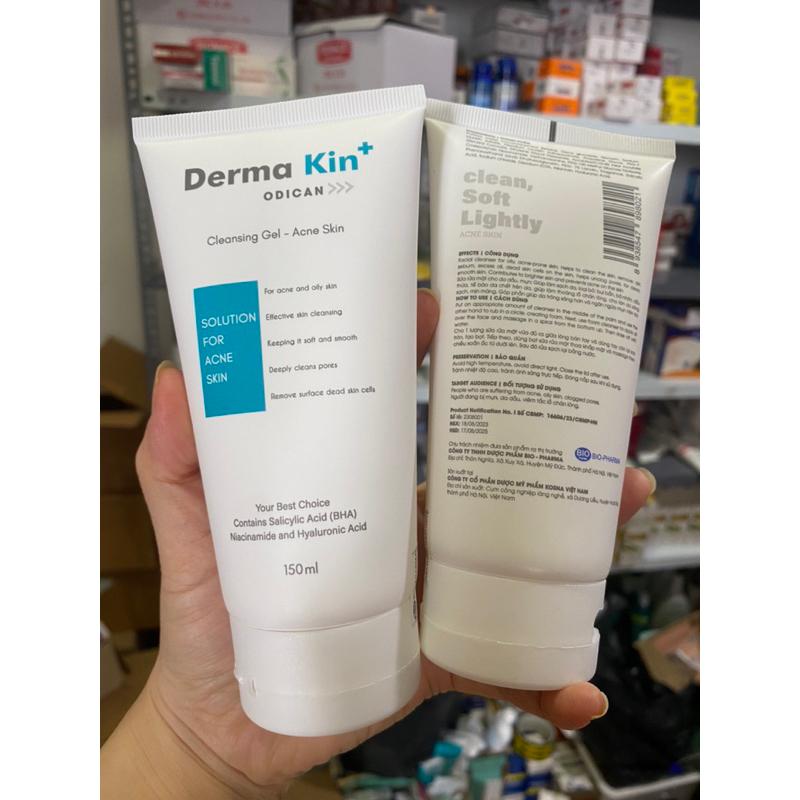 Sữa Rửa Mặt Derma Kin + Dành Cho Da Dầu Mụn - 150ml với thành phần BHA, Niacinamide và Hyaluoronic Acid