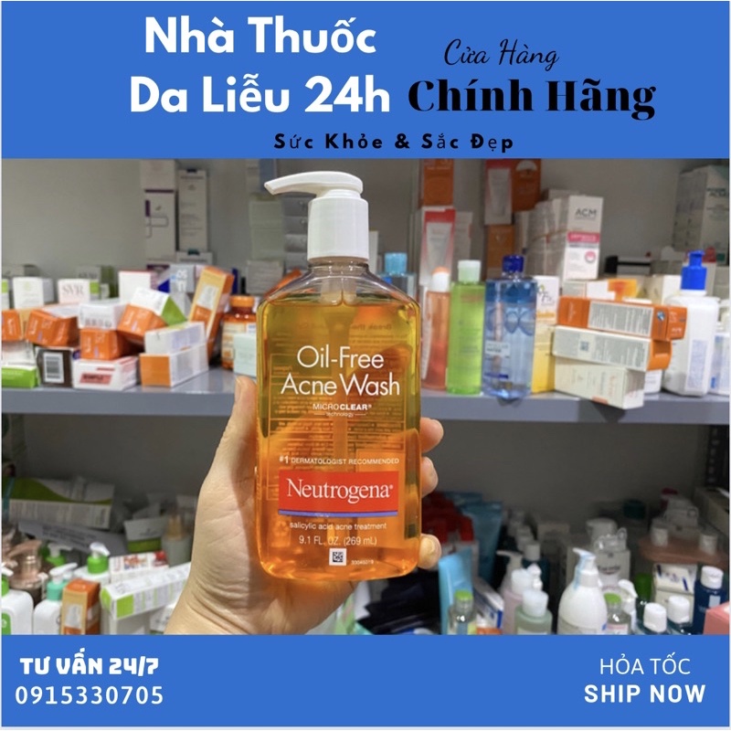 SỮA RỬA MẶT NEUTROGENA OIL FREE ACNE WASH Sữa Rửa Mặt Neutrogena Oil Free Acne Wash không chứa dầu (oil-free) giúp làm sạch tận lỗ chân lông để cho bạn một làn da sạch và sáng.✔️ THÔNG TIN THƯƠNG HIỆU NEUTROGENAThương hiệu Neutrogena là một thương hiệu dược mỹ phẩm chăm sóc da, sữa rửa mặt, kem chống nắng, kem chống nhăn, chăm sóc tóc và mỹ phẩm của Mỹ được các chuyên gia da liễu khuyên dùng. Trụ sở của thương hiệu được đặt tại Los Angeles, California. Theo thông tin trên website của thương hiệu thì Neutrogena được phân phối trên 70 quốc gia. Neutrogena luôn là một trong những thương hiệu hàng đầu về chăm sóc da, Neutrogena cực kỳ thành công với những sản phẩm chống nắng và dưỡng ẩm của mình.Xuất xứ thương hiệu: USANơi sản xuất: USANgày sản xuất: Xem trên bao bì sản phẩm Thành phần: In trên bao bì✔️ THÔNG TIN SẢN PHẨM SỮA RỬA MẶT NEUTROGENA OIL FREE ACNE WASH #Neutrogena #suaruamatneutrogena #oilfreeacnewash #kemduongda #Tonner #HydroBoost✔️ Công dụng của sữa rửa mặt neutrogena oil free acne wash 269ml- Sữa Rửa Mặt Dành Cho Da Mụn Neutrogena Oil-Free Acne Wash không chứa dầu (oil-free) giúp làm sạch tận lỗ chân lông để cho bạn một làn da sạch sâu và khỏe mạnh. - Thành phần có chứa Salicylic Acid giúp năng ngừa và tẩy sạch mụn mà không làm cho da bị khô ráp, không gây kích ứng và giúp kiểm soát bã nhờn hiệu quả.- Sử dụng công nghệ MicroClear, đem đến khả năng làm sạch sâu cho làn da của bạn. Khi da bạn đang gặp vấn đề về điều tiết bã nhờn, bí lỗ chân lông sinh mụn sung, mụn mủ rất cần một sản phẩm có thể làm sạch triệt để, giúp trả lại sự thông thoáng vốn có của làn da.- chiết xuất đến từ BHA – Salicylic Acid, giúp làm sạch da thông thường mà còn có khả năng xoa dịu các nốt mụn đang sưng tấy trên gương mặt của bạn một cách hiệu quả ✔️ HƯỚNG DẪN SỬ DỤNG SỮA RỬA MẶT NEUTROGENA OIL FREE ACNE WASH Sử dụng Sử dụng ngày 2 lần, sáng và tối theo 4 bước như sau: